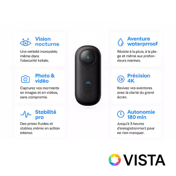 Emportez votre Vista 360 PRO partout : une expérience POV 4K simple, fluide et immersive pour vos voyages et vos passions.